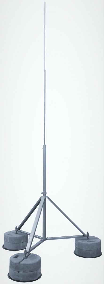 8,0 m Teleskopmast mit 3-Bein-Ständer VA. Spreizbreite 2,5 m. Mit Gewindest. für WLST I-II. Mast 4-teilig, unteres Rohr Ø 50 mm x 2,0 m Edelstahl.