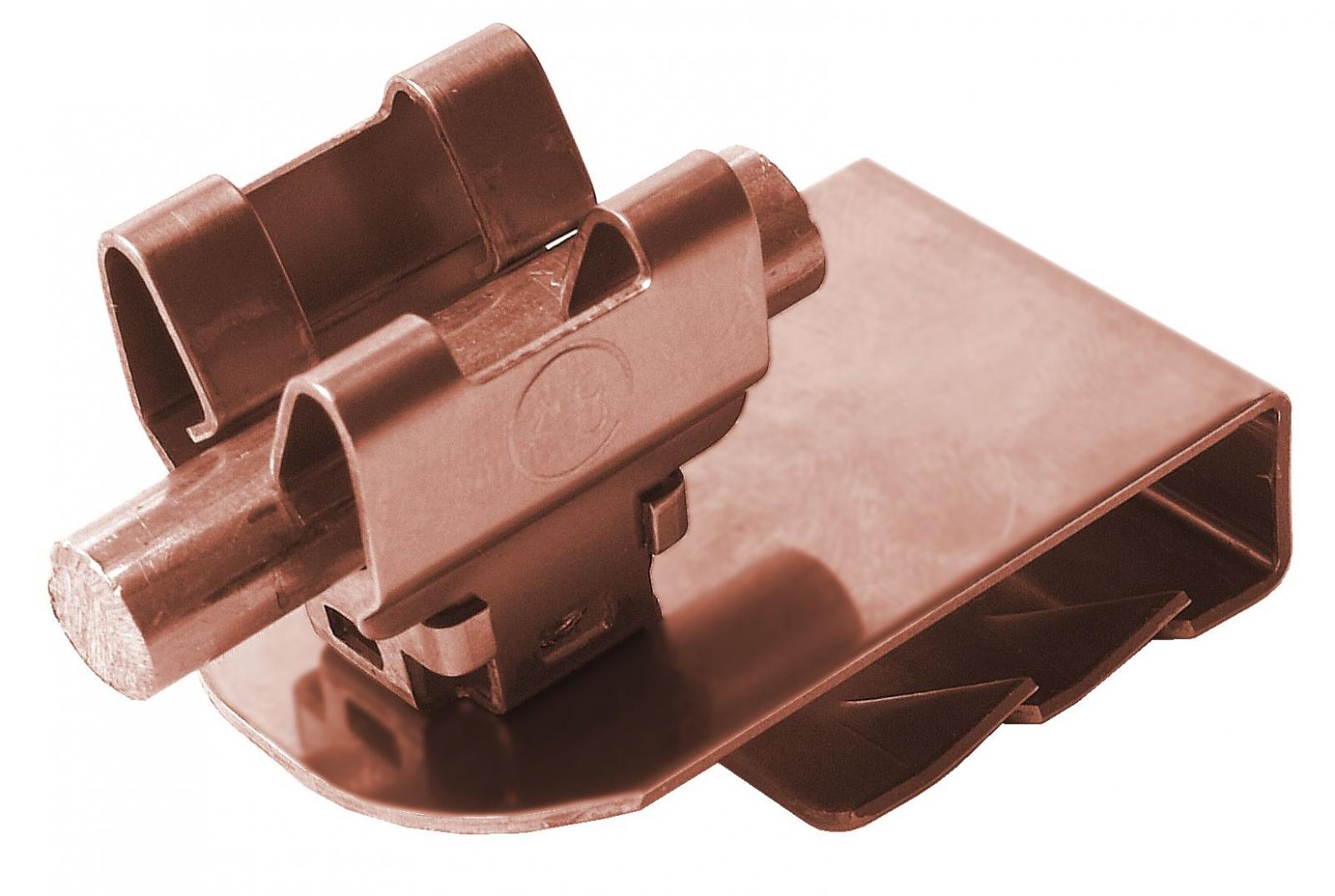 Ziegelkralle für Ziegeldicke 8-10mm 4 Krallen unten,m.Metall Schnapp-Halter 8mm Leitung,Nylonsockel für 28mm Leitungshöhe.Edelstahl verkupfert