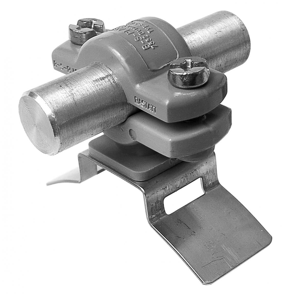 Klemmteil für max.15mm breite Rohrschelle,mit montiertem 13mm Stangen- halter aus Nylon,grau,Stangenabstand zum Rohr 37mm.Edelstahl.