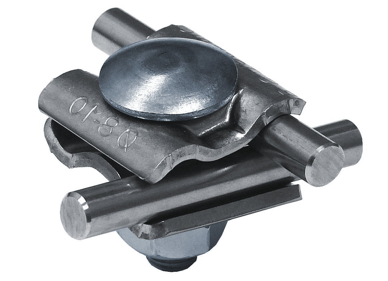 Doppelklemme für 8-10mm Leitung,mit mit M10 Verschraubung.Stahl verzinkt.