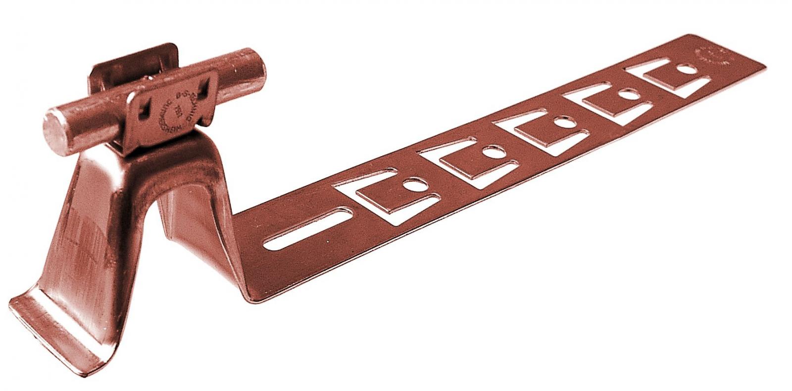 Trapez-Unterschieber für Leitung 8mm, 40mm Leitungshöhe,210mm lang,mit U-Halter, freilaufend,mit 5 Ausbiegezungen.Kupfer.