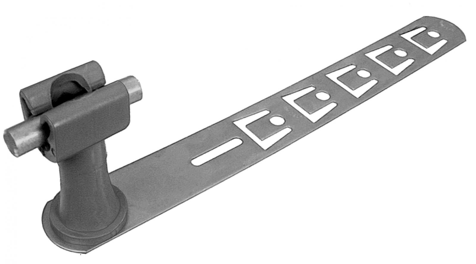 Schieferstütze für Leitung 8mm,40mm Leitungshöhe,210mm lang,mit 5 Ausbiege- zungen,mit Duplo-Halter,grau.Edelstahl.