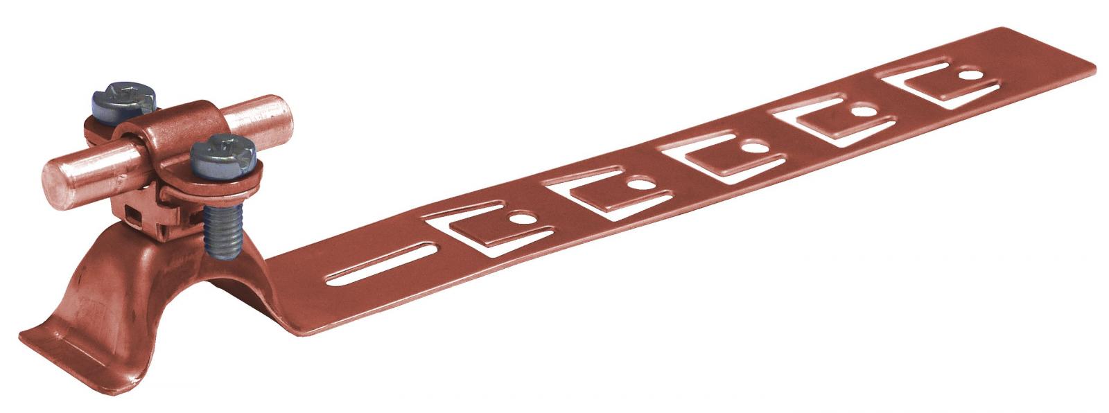 Trapez-Unterschieber für Leitg.6-11mm 25mm Leitungshöhe,260mm lang,Metall- Schraub-Halter klemmend,mit 5 Ausbiege- zungen.Kupfer.