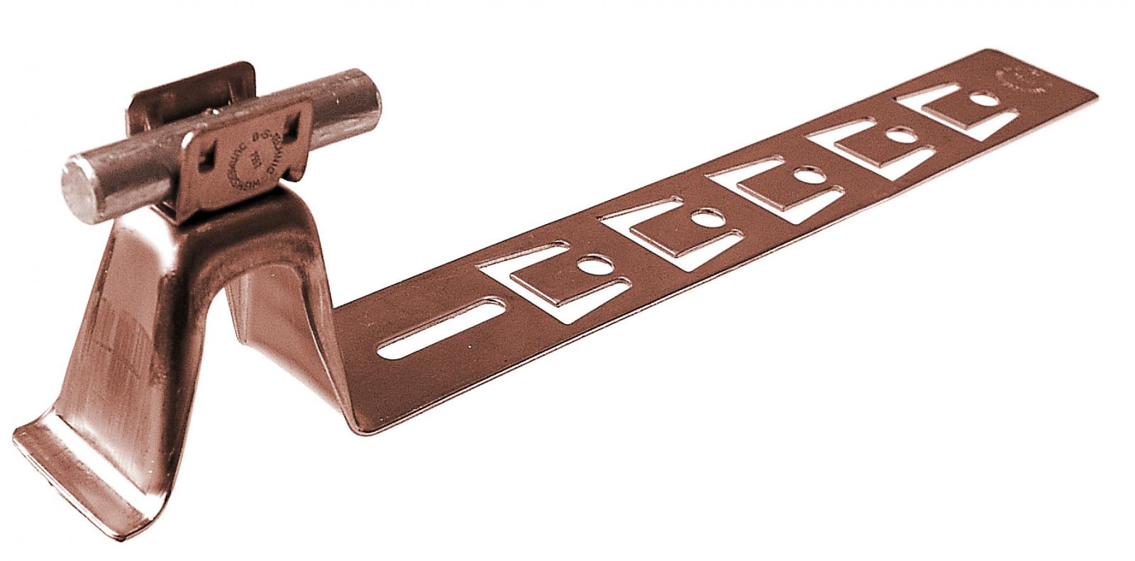 Trapez-Unterschieber für Leitung 8mm, 40mm Leitungshöhe,260mm lang,mit U-Halter, mit 5 Ausbiegezungen.Kupfer.