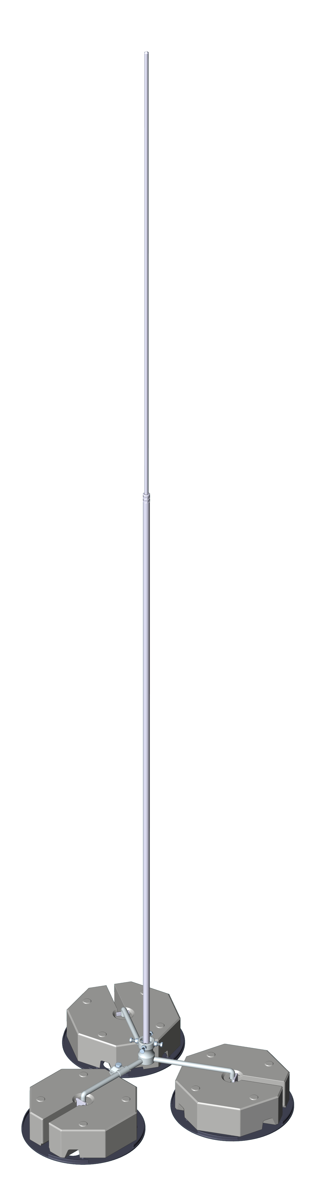 3,0m ALU Fangstange auf 3-Bein Sockel aus Stahl verzinkt,für Betonsockel mit Keiltechnik,mit Anschlußklemme.
