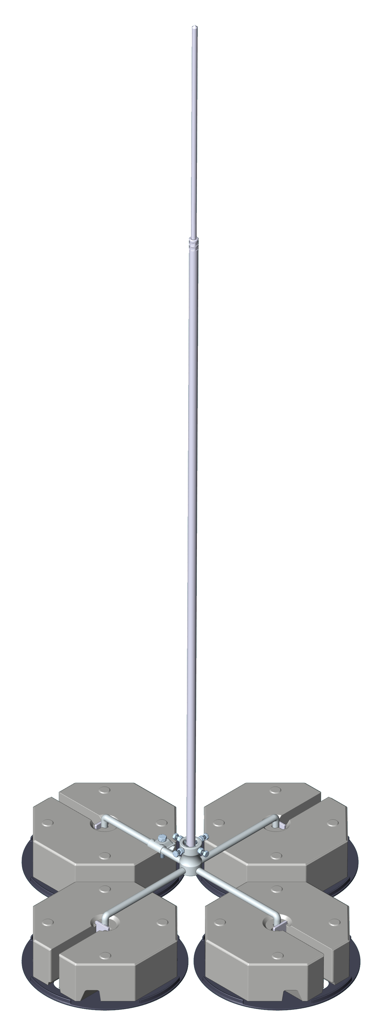 4,5m ALU Fangstange auf 4-Bein Sockel aus Stahl verzinkt,für Betonsockel mit Keiltechnik,mit Anschlußklemme.