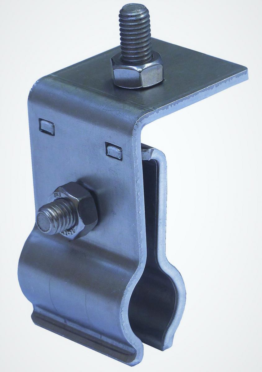Metalldach Leitungshalter ohne Anschluß- klemme,Abstand ca.40mm,für Kalzipdächer mit ca.20mm Wulst,Verschraubung VA M8 Edelstahl.