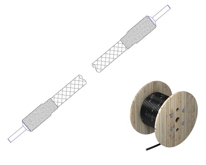 20m konfektionierte Gleitentladungsfreie isolierte Leitung nach ICE 62305.35qmm Querschnitt mit Anschlußelementen DRM 8mm an beiden Enden.DRM 23mm.Schwarz.