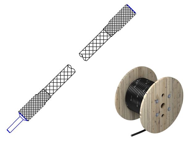 30m konfektionierte Gleitentladungsfreie isolierte Leitung PR90 nach ICE 62305. 35qmm Querschnitt mit Mast u. Endanschluss DRM 23mm.Schwarz.
