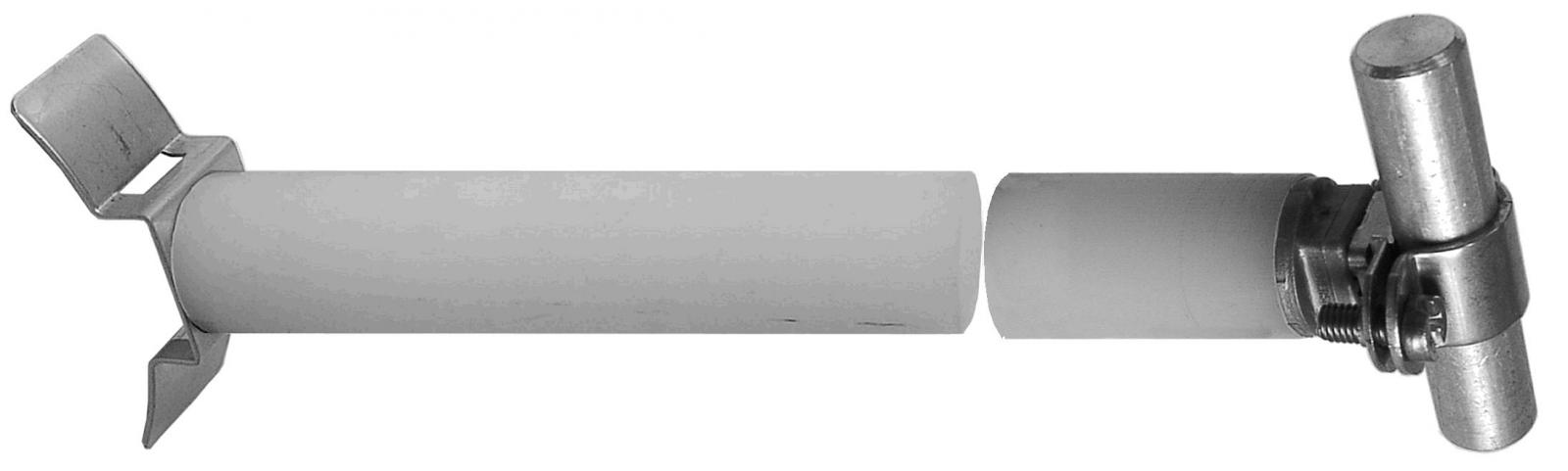 1000mm,25mm Drm.GFK-Nylontrav.f.Auffangst. 16mm,m.VA-Adapterfuß für Rohrschellen mit Bandbreite 15mm.Halter aus Edelstahl. Nylon grau.
