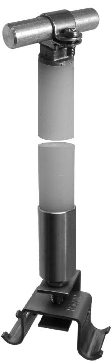 1000mm,25mm Drm.Nylontrav.f.16mm Auffangst m.VA-Adapterfuß für Rohrschellen mit max. Bandbreite 25mm.Halter aus Edelstahl. GFK-Nylon grau.