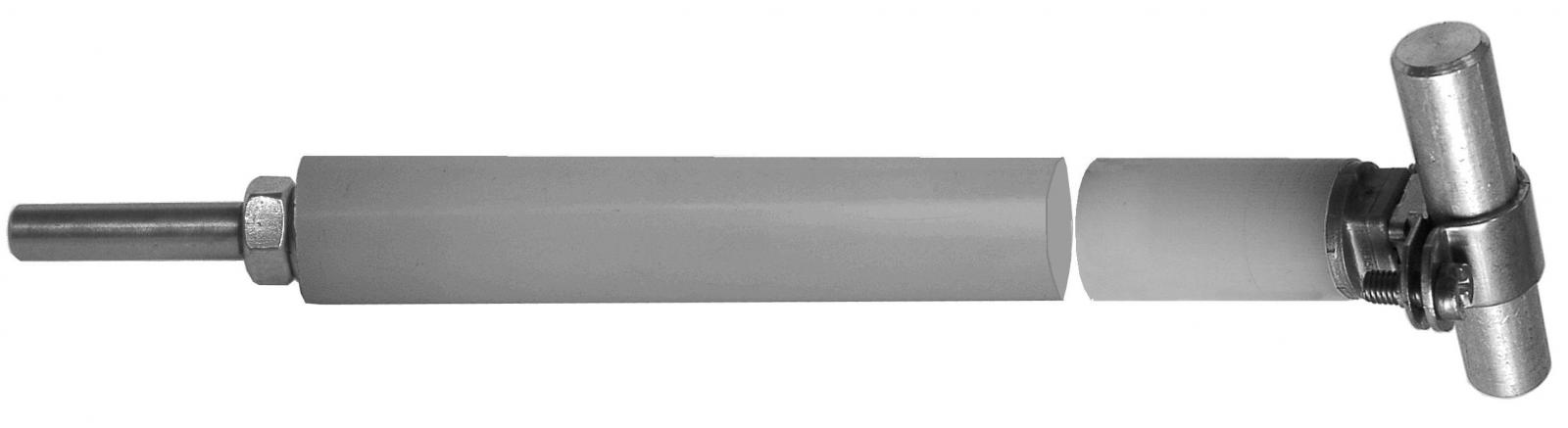 750mm,25mm Drm.GFK-Nylontraverse f.16mm Auffangst,mit Adapterbolzen DRM.10x80mm,VA Mutter M10,Federring u.U-Scheibe.Halter aus Edelstahl.Für div.Klemmen.Nylon grau.