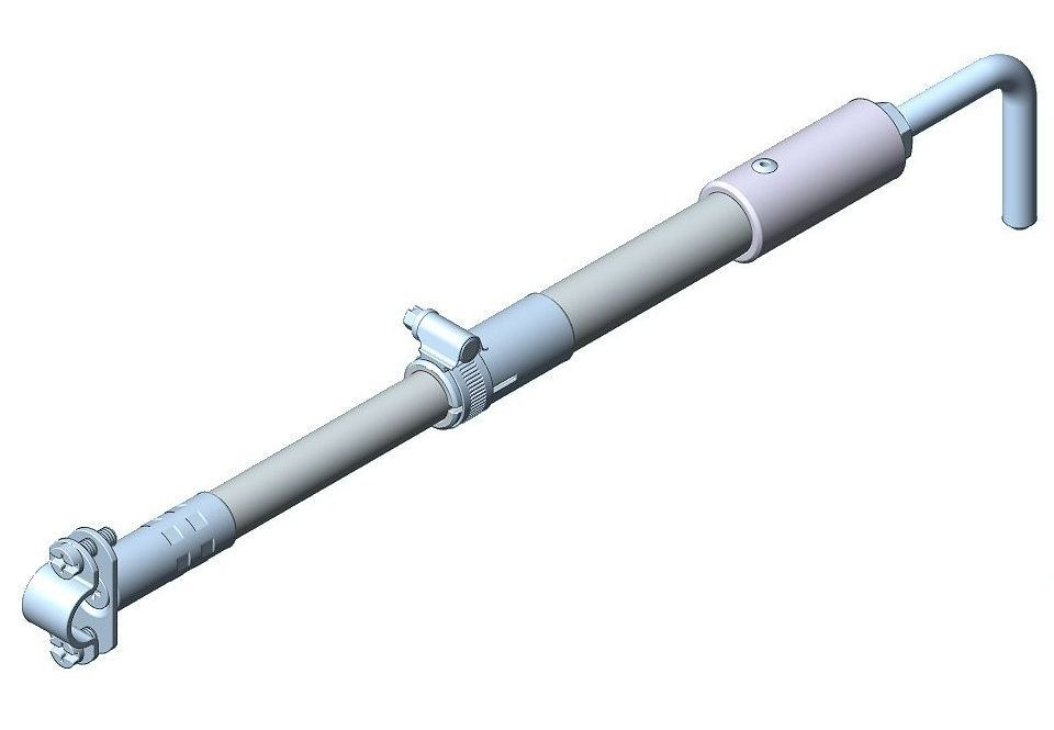 Teleskop-Isotraverse 20/16mm 600-1000mm lang,mit 90° Fuss DRM 10x80mm,für Montage mit Konstruktionsklemmen. Mit VA Schraubhalter für DRM 16mm.