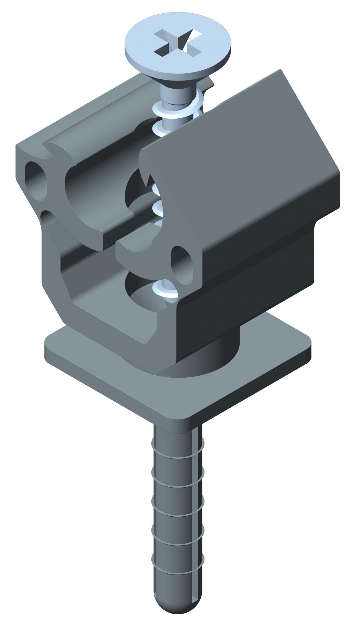 Schnapp-Duplo-Dübel für Leitung 8mm, Leitungshöhe 18mm,mit angespritztem Dübel 6x35mm,mit vormontierter VA-Schraube 4,5x50mm.Grau.