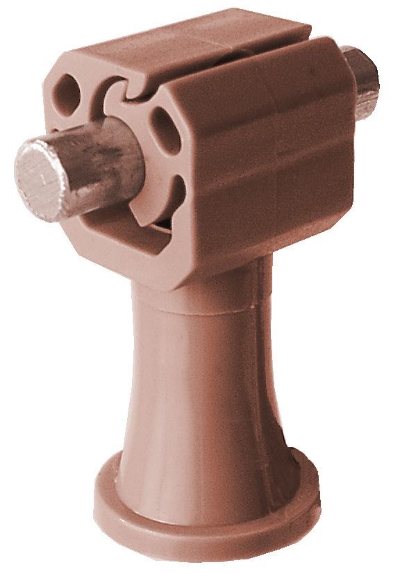 Schnapp-Duplo-Schaft für Leitung 8mm, Leitungshöhe 40mm,mit Bohrung 6,5mm,mit Bodenplatte 25mm Durchmesser.CU-farben.