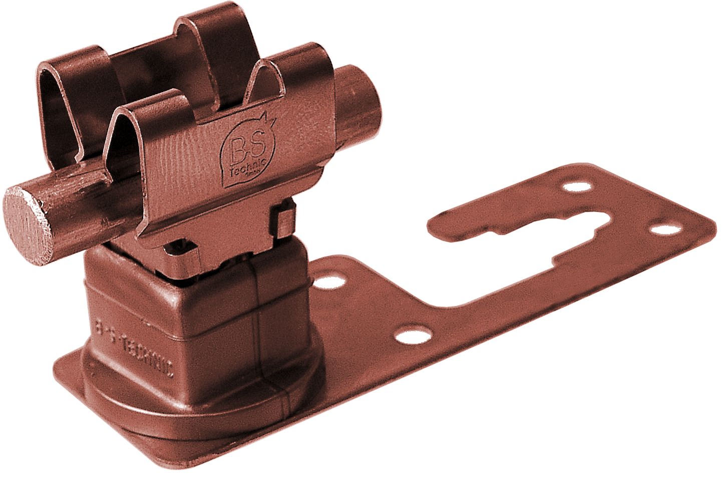 Welleternitstütze für Leitung 8mm,mit Ny- lonsockel für 25mm Leitungshöhe,75mm lang, mit VA-Duplo-Halter,mit Strukta-Einhängung und 4 Nietlöchern,4mm.Kupfer.