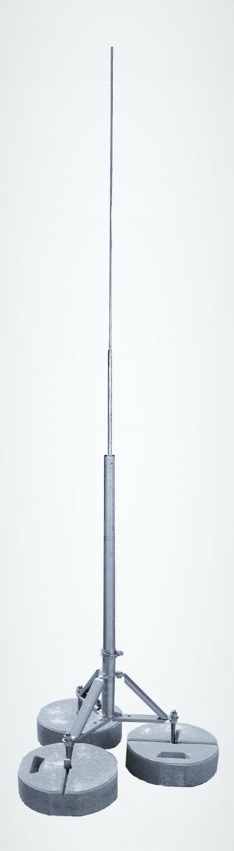 AL-Fangmast 3,5m Höhe,3-teilig mit 3-Bein-Sockel 0,4m Spreizbreite, Fangmastständer komplett Edelstahl. Mit 3 Gewindestangen.WLST II.
