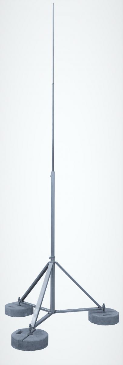 AL-Fangmast 4,5m Höhe,3-teilig. mit 3-Bein-Klapp-Sockel Spreizbreite 1,0m, Segmente und Zentralrohr Edelstahl. Mit Gewindestücken für Betonsockel.WLST II