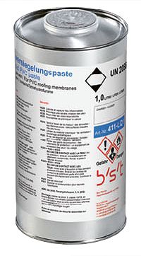 Flüssigfolie (PVC-Nahtversiegelungspaste) hellgrau,zum Aufkleben(verschweißen)von Leitungsträgern mit PVC-Dachfolie. 1,0 L in der Dose.