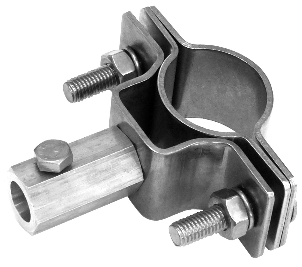 Traversenschelle 1 1/4 Zoll,mit Einsenkung mit Aluminium Gewindehülse M10,für für GFK-Stangen 16mm.Edelstahl.