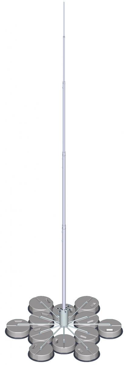 Aluminium Fangmast 9,5m Höhe,mit 12-Bein Fertig-Ständer Stahl verzinkt. WLST.II